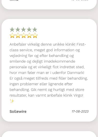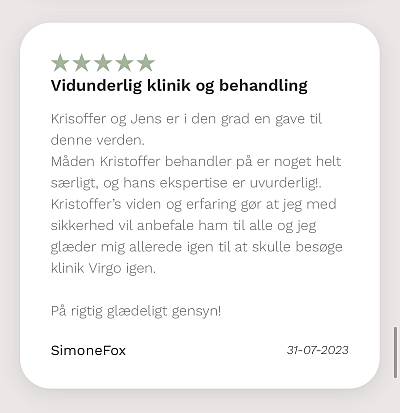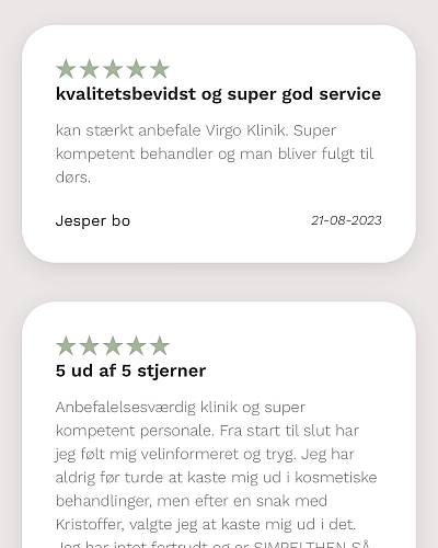 Herunder kan du se et lille udpluk af vores resultater i Klinik Virgo såvel som udtalelser fra vores veltilfredse gæster