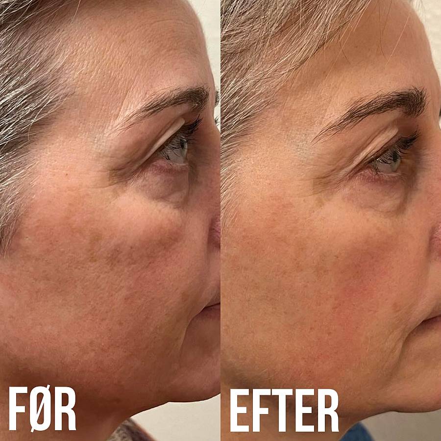 Vi fjerner karsprægninger ved hjælp af IPL, som er intenst pulserende lys. Det forbedrer hudens struktur betydeligt og giver en mere ensartet hud.